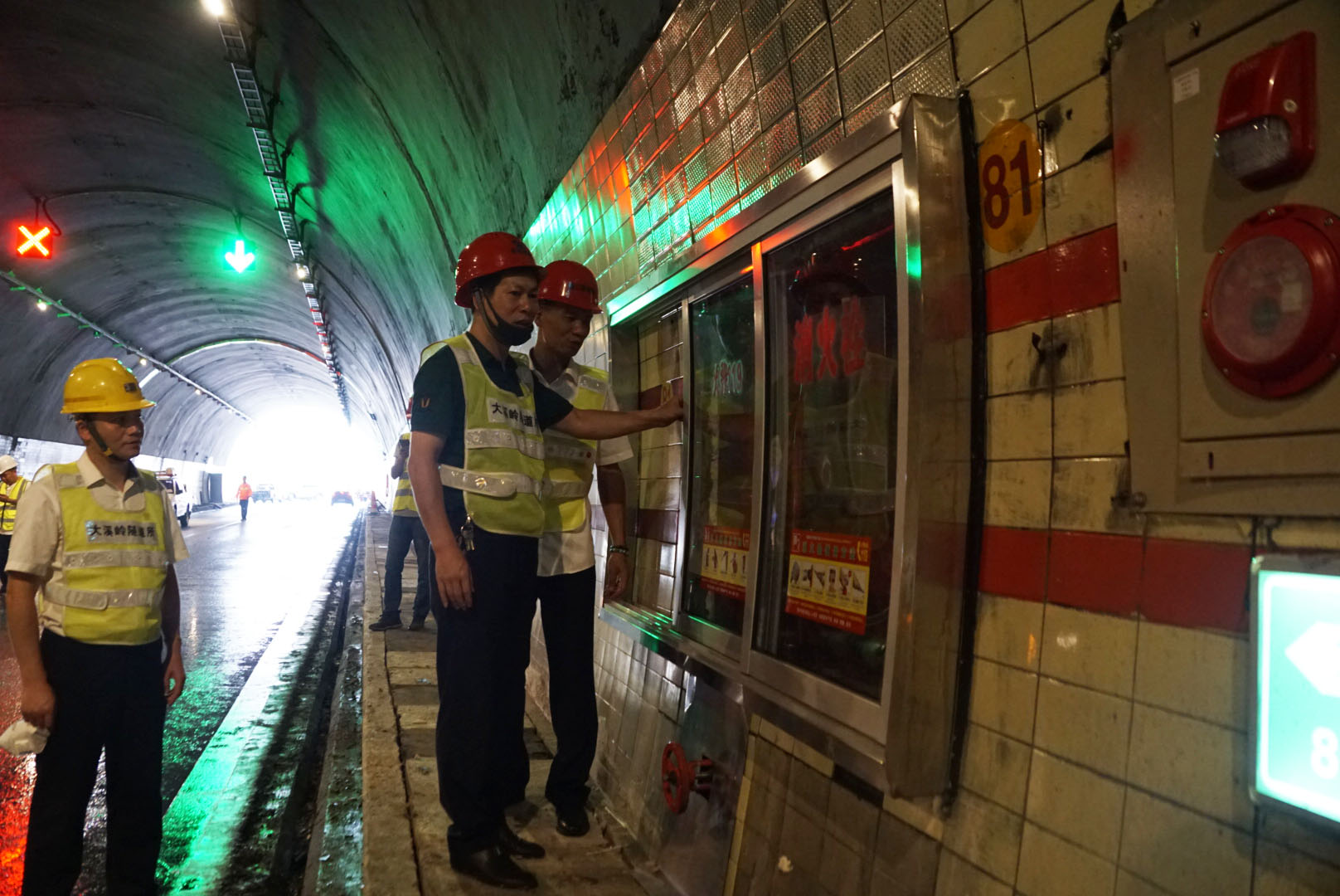 驗收小組人員佩戴安全帽,身著反光背心,從寧向隧道北洞口開始,以徒步方式開展驗收。每次途經(jīng)改建之地,他們便仔細(xì)檢測,著重對機(jī)電設(shè)備安裝調(diào)試效果、消防設(shè)施配備、緊急電話安裝、蓋板更換、瓷磚修復(fù)及清洗情況等進(jìn)行仔細(xì)排查驗收。