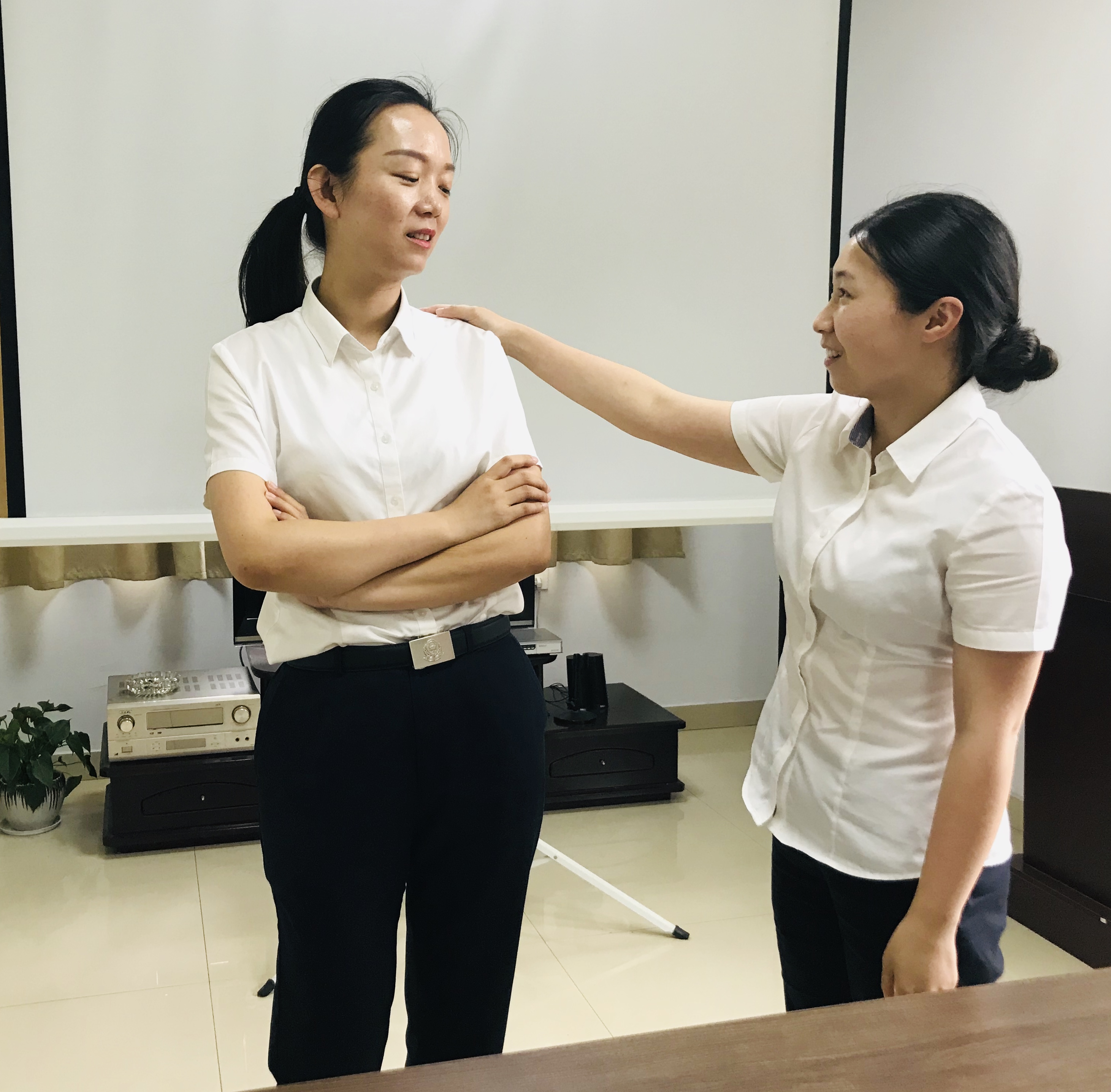在表演中,培訓(xùn)師結(jié)合平時窗口實際工作,一一扮演各種角色,將各角色演繹得淋漓盡致。賽場上,大家曉之以情、動之以理,個個情緒高漲,積極配合。通過一個個鮮活生動的實例,大家真實地反映出收費(fèi)員與司乘人員在收費(fèi)過程中遇到的各類情景。