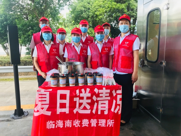 活動現(xiàn)場,志愿者們身穿耀眼的紅馬甲,面帶微笑,顯得格外耀眼動人。雖然大家的衣服早已被汗水浸透,但熱情周到的服務(wù),獲得了過往司乘的紛紛點(diǎn)贊。臨海南收費(fèi)所通過開展“夏日送清涼”活動,不僅送去了高速公路工作者的愛心,同時(shí)也拉近了與司乘人員之間的溝通交流,贏得了過往司乘人員的好評,塑造了良好的窗口形象。 除了為司乘送“清涼”,該所也真正做到把清涼送到收費(fèi)一線,把關(guān)懷送到員工心坎,保障員工的健康權(quán)益,為員工提供了清涼油、克痢痧、午時(shí)茶、藿香正氣水等防暑降溫物品。食堂每天精心熬制不重樣甜湯,大家喝到提前冷涼的甜湯紛紛表示,三伏天里,雖然感到悶熱難受,但在休息的時(shí)候能喝上一碗涼涼的甜湯,真幸福。并保證一定會克服酷暑高溫,堅(jiān)守崗位,盡職盡責(zé),積極投身于收費(fèi)、交通疏導(dǎo)工作中。