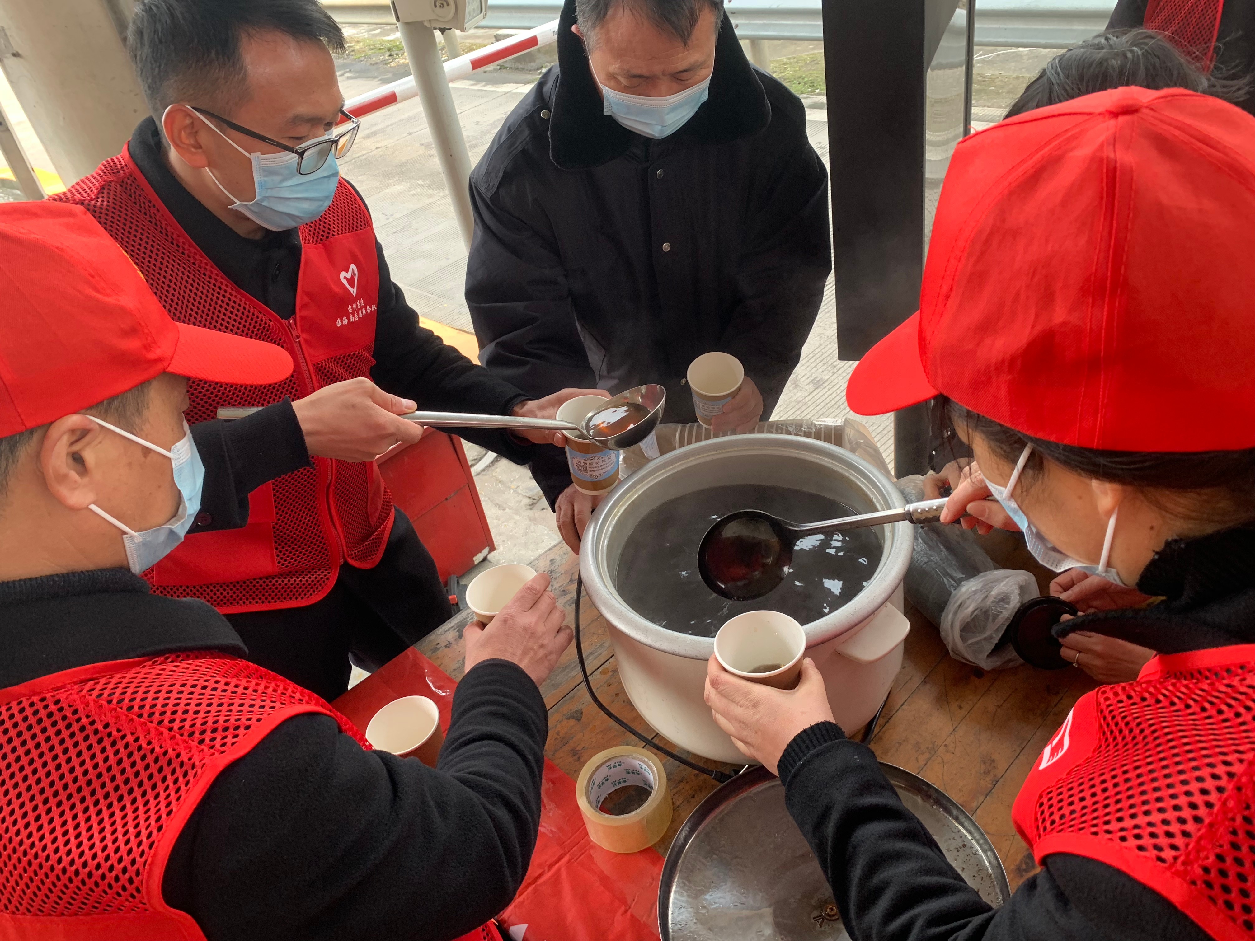 為了開展好本次活動(dòng),收費(fèi)所黨支部提前一天就進(jìn)行了布置,力求在做好疫情防控的同時(shí)開展好志愿服務(wù)活動(dòng)。 當(dāng)天上午,收費(fèi)所食堂預(yù)先熬制好滿滿一大鍋紅棗姜茶,伴隨著鵝毛大雪,車道寒風(fēng)凜冽,但刺骨的寒風(fēng)擋不住志愿者們的似火熱情,大家身穿紅馬甲,面帶口罩,在搭好志愿服務(wù)臺(tái)后,有的負(fù)責(zé)用勺子把滾燙的茶水裝進(jìn)紙杯,有的負(fù)責(zé)蓋杯蓋,有的負(fù)責(zé)傳遞,有的負(fù)責(zé)把裝好茶水的杯子送給駕駛員,現(xiàn)場(chǎng)有序分工。熱情的服務(wù)贏得過往司乘人員的好評(píng)。
