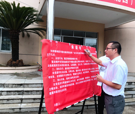 圖為公司副總經(jīng)理章海峰在承諾書(shū)上簽名