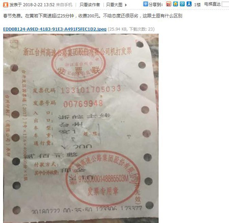 集團(tuán)對(duì)此事件高度重視,當(dāng)即調(diào)取當(dāng)時(shí)多路監(jiān)控錄像,還原了事件真相。2月22日凌晨0:29:50,投訴人駕駛小轎車進(jìn)入臺(tái)州所6號(hào)車道,時(shí)間已經(jīng)過了春節(jié)小客車免費(fèi)通行的期限,收費(fèi)員黃智超請(qǐng)求出示入口站的通行卡或者紙質(zhì)繳費(fèi)憑證,車主回答無卡無票,聲稱自己是從臨海南上進(jìn)入高速。經(jīng)查證,臨海南并沒有該車的入口信息。收費(fèi)班長再次詢問時(shí),車主說“忘記了”,說自己“去年過來時(shí)只付了20塊錢”,但是臺(tái)州站出口小客車最少通行費(fèi)是25元(因?yàn)橛写召M(fèi)10元),收費(fèi)班長回答不存在有“20元的通行費(fèi)”,司機(jī)忽而改口說是天臺(tái)進(jìn)入的,忽而想了一下又說是重慶過來的,在安徽呆了兩天,當(dāng)天早上從安徽上的高速。班長再三解釋中途沒下高速未重新領(lǐng)票或卡,一旦過了免費(fèi)期限,是哪個(gè)站入口就按哪里收費(fèi)的。“浙皖主線”是安徽進(jìn)入浙江的收費(fèi)站,通行費(fèi)(連代收費(fèi))是小客車200元。車主于0:35:46遞給收費(fèi)員200元,收費(fèi)員打印發(fā)票遞回,車主于0:36:15拿出手機(jī)對(duì)著收費(fèi)員拍照,0:36:30駛離車道。