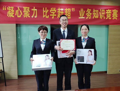 圖為獲勝人員 此次筆試和現(xiàn)場(chǎng)問(wèn)答的競(jìng)賽方式,測(cè)試了全所人員業(yè)務(wù)知識(shí)、實(shí)踐操作和新業(yè)務(wù)新知識(shí)的掌握程度,激發(fā)了大家比學(xué)趕超的熱情,同時(shí)也讓員工找到自身業(yè)務(wù)水平不足的一面,有利于推動(dòng)規(guī)范化文明服務(wù)更上新臺(tái)階。 楊雅芬