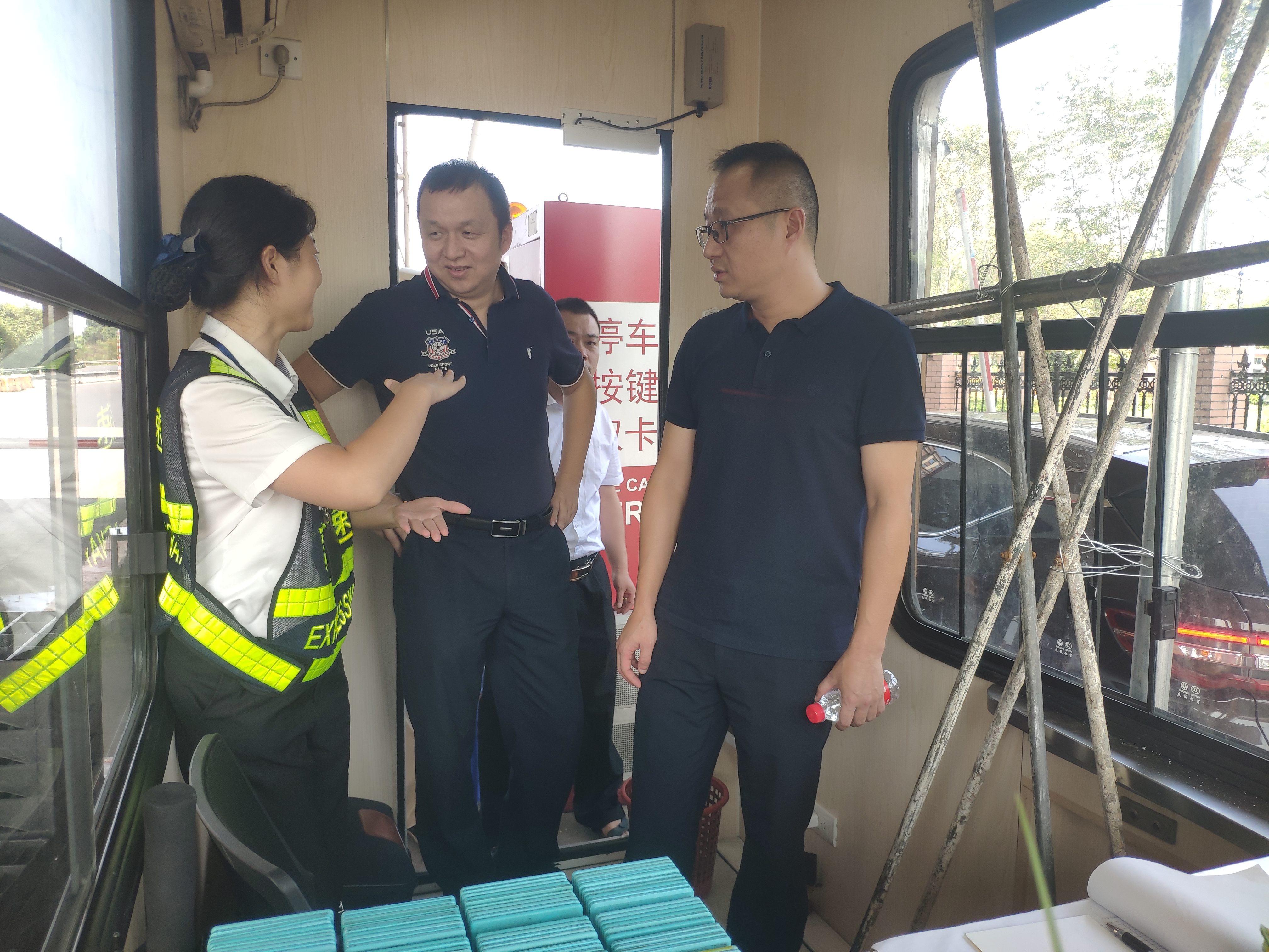 圖為章海峰檢查受損的收費(fèi)崗?fù)?/span> 9號(hào)臺(tái)風(fēng)“利奇馬”來勢洶洶,給收費(fèi)所帶來較大影響。該所積極配合施救部門,對(duì)在臺(tái)風(fēng)中掉落的龍門架情報(bào)板及時(shí)清理,為開通做好準(zhǔn)備。臺(tái)風(fēng)造成停水停電,該所克服用水的需求,用儲(chǔ)水桶就近接來飲用水,保障食堂的用水,大家自發(fā)組織接雨水用于衛(wèi)生間。由于長時(shí)間自發(fā)電,發(fā)電機(jī)超負(fù)荷運(yùn)行,該收費(fèi)所及時(shí)備好各類票據(jù),以備不時(shí)之需。由于停電、天氣炎熱,收費(fèi)員還做了小扇子,稍減炎熱。 臺(tái)風(fēng)過后的周末,該所負(fù)責(zé)人組織人員對(duì)所內(nèi)場地進(jìn)行清理,及時(shí)恢復(fù)收費(fèi)所環(huán)境衛(wèi)生。在得知接送車因?yàn)榈缆凡煌ㄟ€困在臨海時(shí),征費(fèi)二班、三班的全體人員都表示,可以克服困難繼續(xù)上班。在連續(xù)近四天的倒班中,大家的身體早已疲憊不堪,但還是將最好的一面展現(xiàn)在窗口中,齊心協(xié)力恢復(fù)收費(fèi)站生產(chǎn)生活。 楊雅芬