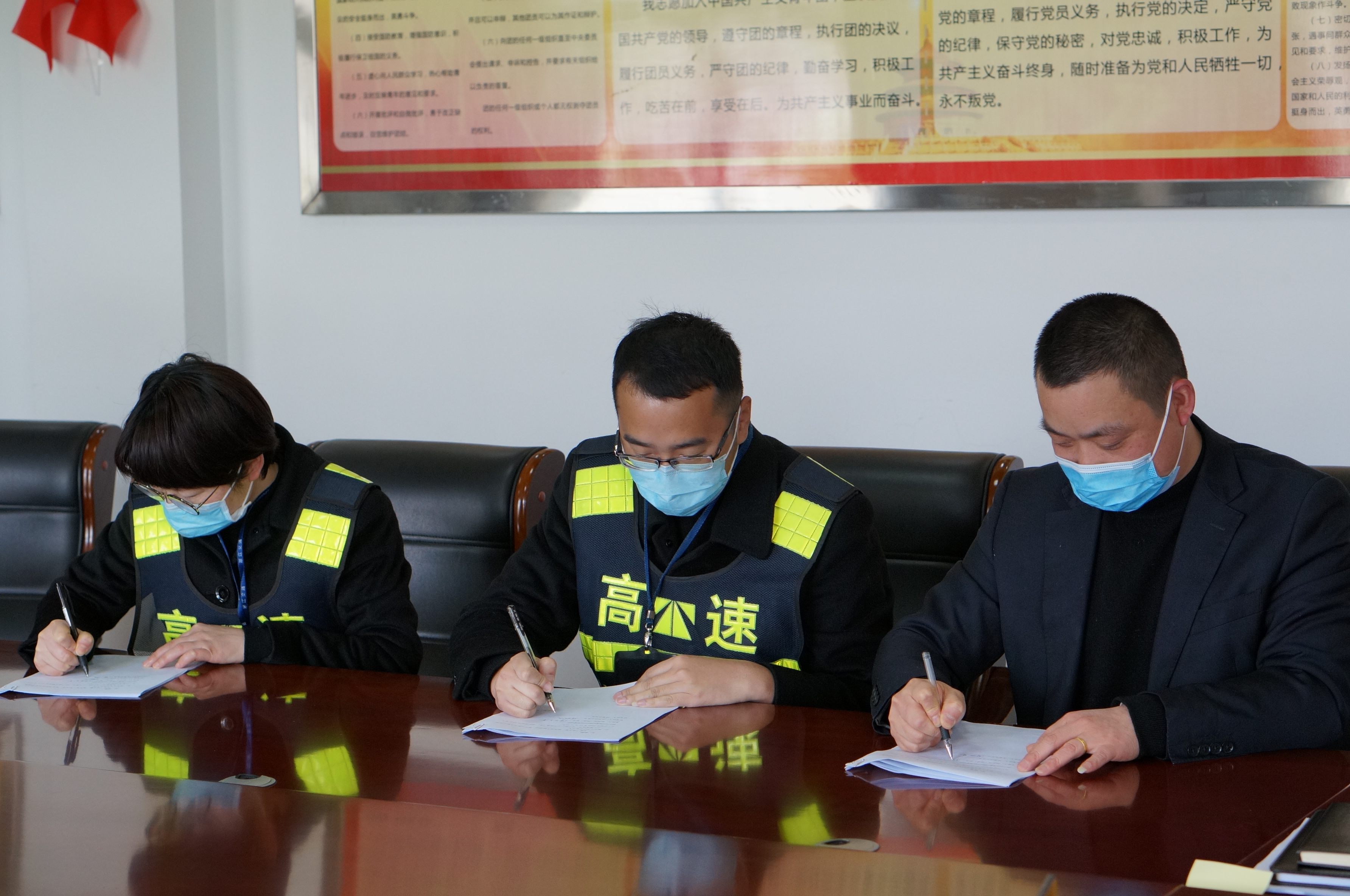 會上,所負責人與各班班長、駕駛員簽訂了《臺州收費所2020年度黨風廉政建設(shè)責任書》、《廉潔履職承諾書》、《安全承諾書》、《安全生產(chǎn)目標管理責任書》、《駕駛員安全責任書》等目標責任書,將責任目標層層分解,層層抓落實,一級抓一級,明確了各項工作的責任與分工,做到各盡其職,規(guī)范各崗位行為。