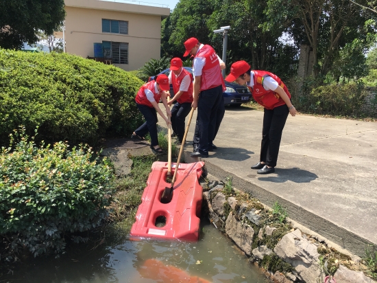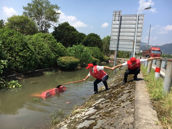 圖為志愿服務現(xiàn)場 隔離護欄被風吹歪的,將其扶正,并作簡單的固定;綠化帶好多樹被連根拔起,找來撐桿、繩子進行加固;斷枝殘葉滿地都是,就用手撿,用掃把掃,集中堆放倒伏的斷枝;清掃路上的垃圾;清除路障;打撈被風吹入邊溝的水馬;對收費區(qū)域的衛(wèi)生來了一次大清理…… 臺風后氣溫升高,空氣濕度大,天氣異常悶熱,志愿者們揮汗如雨,一個個臉被曬得通紅,他們卻沒有因此放下手中的工具,停滯清理的步伐,迎“熱”而上,為災后的恢復貢獻自己的力量,用行動踐行初心和使命。 夏蓮萍