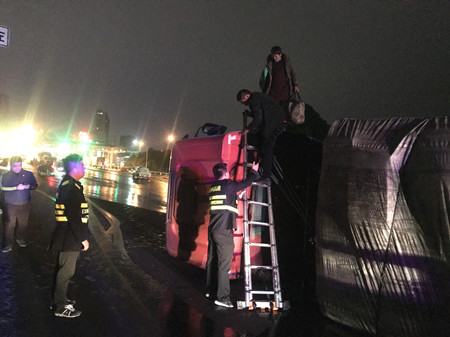 隨后,施救中心、交警、維養(yǎng)中心人員趕到,經(jīng)過將近三個小時努力,終于將內(nèi)廣場側(cè)翻車輛吊起,并用沙子處理掉在地上的機油以免發(fā)生二次事故,有效保障了收費區(qū)域的安全暢通。 臨近年關(guān),在這里提醒廣大貨車司機朋友,請一定要將貨物捆扎牢固,以免造成損失,過一個安定祥和的春節(jié)。 周曄