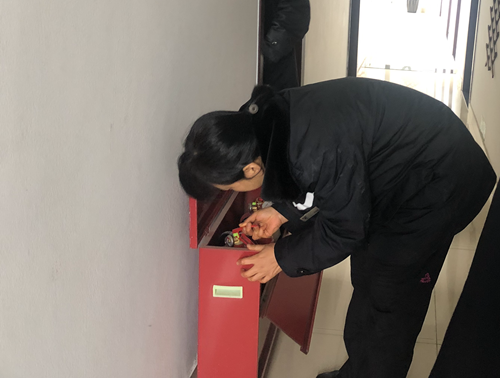 圖為檢查組檢查消防器材 在這之前,溫嶺西收費(fèi)所排除了一起日常生活中出現(xiàn)的安全隱患。收費(fèi)二班班長陳軍路過自動伸縮門時,發(fā)現(xiàn)該門不銹鋼骨架有一節(jié)彎折脫落的現(xiàn)象。若不及時修理,開門時極容易造成電機(jī)損壞。于是他立即把情況反應(yīng)給所領(lǐng)導(dǎo),考慮到半夜所里仍有車輛進(jìn)出,他又馬上聯(lián)系安全員林葉輝,監(jiān)控員陳丹軍找來工具和鐵絲,三人齊心協(xié)力把脫落的骨架進(jìn)行了復(fù)位鞏固,消除了安全隱患。