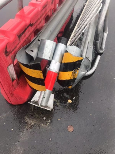 圖為被撞壞的設施 當天10點10分, 該所出口外廣場,一輛5類大貨車趁著雨勢較大,竟私自將道路中間水碼移開,然后違規(guī)掉頭撞壞隔離帶及外部鐵質(zhì)柵欄后逃逸。因當時雨勢大且該車車速較快,收費二班當班安全員林葉輝在追逐示警無效后立刻報告班長陳軍,通過調(diào)取監(jiān)控錄像后查到該車車牌,并迅速與指揮中心取得聯(lián)系。經(jīng)指揮中心查詢,該車為某公司名下運輸車輛,隨即陳軍與該公司取得聯(lián)系。 經(jīng)了解,該車駕駛員因雨天行駛速度慢,怕耽誤去院橋下貨,一時沖動違規(guī)掉頭想節(jié)省時間,在撞到隔離帶后更加慌張?zhí)右?。在和該車司機耐心溝通后,司機表示下完貨后會立刻前來處理。 經(jīng)過近一個小時的等待,這位司機終于回到現(xiàn)場,公司理賠人員及安保人員與司機一同確認隔離帶損壞情況,確認無誤后該車司機繳納了賠償款后駕車離開。 在此筆者提醒各位司機朋友,切勿違規(guī)掉頭以免造成不必要的危險。 洪燈杰