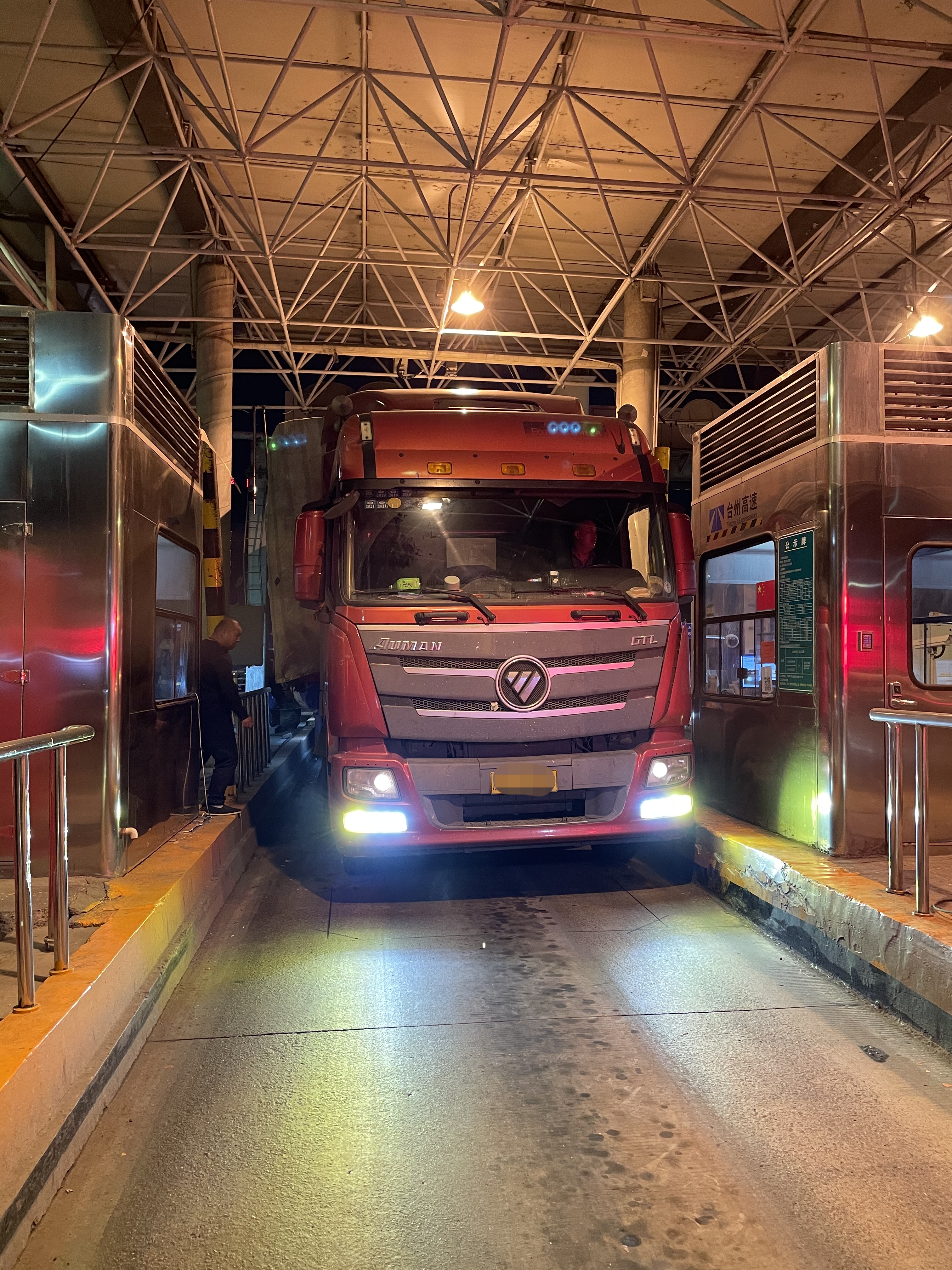 夜幕下的溫嶺西收費站入口,繁忙而有序,大貨車一輛接著一輛,對于超限車輛也在有序勸返當中。這時,一輛運輸廢木板的車輛蓋著篷布飛快地駛?cè)?/span>9號車道,不過該車已進入勸返人員的密切關注之中,坐崗人員林華平也已做好了對該車勸返的準備。