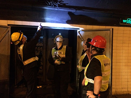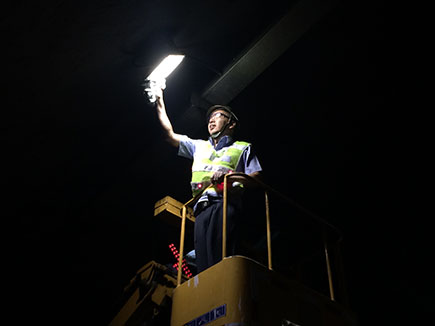 圖為工作人員檢修照明系統(tǒng)線路