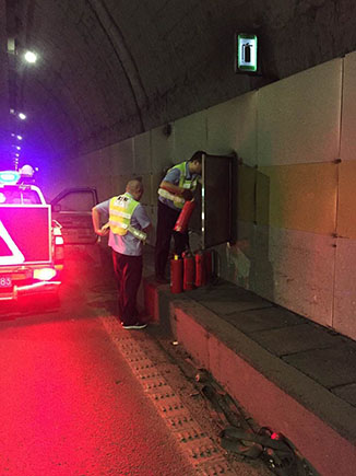 圖為工作人員更換滅火器 因隧道內(nèi)車輛往來密集,氣體和灰塵難以散發(fā),容易沉積在隧道壁、監(jiān)控?cái)z像頭及照明燈上形成污漬,此日積月累削弱了隧道內(nèi)的照明效果,影響駕駛員視線,存在安全隱患。對(duì)此,黃土嶺隧道所組織人員對(duì)隧道進(jìn)行清洗和維修保養(yǎng)設(shè)備,全面排查各類安全隱患。執(zhí)勤隊(duì)利用登高車逐一清潔寧向左洞內(nèi)監(jiān)控?cái)z像頭及照明燈,檢查消防設(shè)施狀況,統(tǒng)一對(duì)滅火器進(jìn)行掛牌完善記錄,并協(xié)同維養(yǎng)中心檢修溫向隧道照明系統(tǒng)線路,修復(fù)損壞的燈具。 經(jīng)過清洗保養(yǎng)后的黃土嶺隧道,燈光通明,監(jiān)控清晰,有效地保障了隧道的安全暢通。 毛譯聆