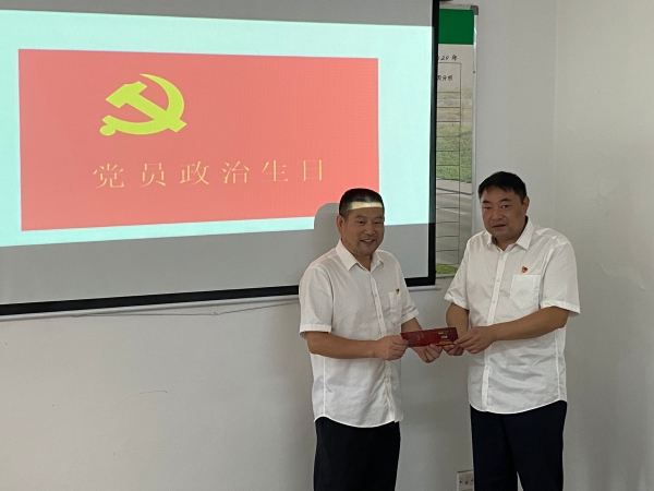 會(huì)議現(xiàn)場(chǎng),黨支部書(shū)記李海福向李學(xué)來(lái)贈(zèng)送“政治生日”賀卡,并送上“政治生日”祝福,讓李學(xué)來(lái)感受到來(lái)自黨組織的關(guān)懷。