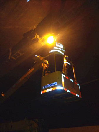 1月31日上午,該所執(zhí)勤隊(duì)員在隧道巡邏時(shí)發(fā)現(xiàn)溫向快車道一盞照明燈被超高車刮蹭而導(dǎo)致燈罩損壞,燈頭及組件掛落蕩在橋架下,很容易造成二次事故而引起人員傷亡。一發(fā)現(xiàn)該隱患,隊(duì)長(zhǎng)李新波立即向所長(zhǎng)李立巍報(bào)告險(xiǎn)情,馬上聯(lián)系高速交警、指揮中心人員,要求立即封道搶修。 大溪嶺隧道所在險(xiǎn)情發(fā)生的第一時(shí)間作出緊急措施,兩名執(zhí)勤隊(duì)員在溫向隧道洞口卡口預(yù)警,李立巍向維養(yǎng)中心調(diào)來(lái)登高車,三名電工隨即進(jìn)隧道維修脫落的燈罩。經(jīng)過(guò)25分鐘的快速搶修,目前設(shè)備已能正常使用,隧道恢復(fù)通行。 李新波