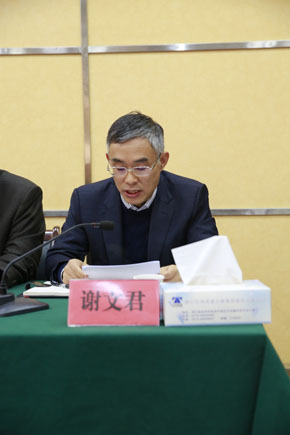 圖為公司董事長謝文君在會上匯報2016年度工作