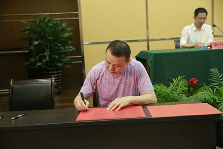 圖為公司黨委副書記、總經(jīng)理張建平與部門(子公司)負責(zé)人簽訂《黨風(fēng)廉政建設(shè)責(zé)任書》