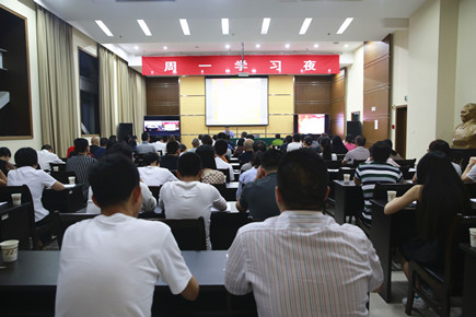 圖為公司黨委委員、副總經(jīng)理陳保衛(wèi)主持活動 本次學習夜活動以“兩學一做”學習教育常態(tài)化制度化為主題,邀請市直機關工委副書記李欠梅為學習人員上此黨課。李欠梅引用“抓好黨建是最大的政績,不抓黨建是最大的失職”這句話作為開場語,借此引起全場人員對黨建工作的重視,隨后圍繞“兩學一做”學習教育常態(tài)化制度化重大意義、基本目標要求、開展方式等內(nèi)容,通過穿插事例和小故事展開詳細講解,為單調(diào)的黨課注入生動因子,確保學習夜學有成效。 學習會上,大家還觀看了《省十四次黨代會報告解讀》視頻報道。 公司副總經(jīng)理陳保衛(wèi)主持活動。公司領導干部,大樓、房產(chǎn)集團和市政公司共115人坐滿大樓主副會場,全體人員按指定位置入座,兩個會場還分別安裝了視頻會議系統(tǒng),便于全體人員同步學習。 陳林偉