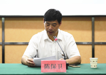圖為公司副總經(jīng)理陳保衛(wèi)主持會議