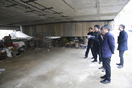 圖為集團(tuán)副董事長(zhǎng)、總經(jīng)理張建平在院橋互通下檢查
