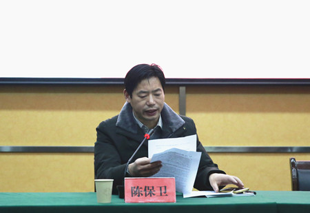 圖為集團副總經(jīng)理陳保衛(wèi)傳達會議精神現(xiàn)場