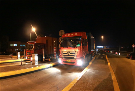 臺(tái)州南、溫嶺西收費(fèi)所,分流9點(diǎn)開(kāi)始,由于夜間通行貨車(chē)居多,每輛需計(jì)重收費(fèi),且?jiàn)A雜綠農(nóng)車(chē),情況復(fù)雜,分流1個(gè)小時(shí)后出口車(chē)道已排成車(chē)燈長(zhǎng)龍,壓力巨大?!奥房趨f(xié)警一定要守住第一道防線(xiàn),不能讓任何車(chē)輛進(jìn)入!”富有經(jīng)驗(yàn)的所長(zhǎng)王益民已在車(chē)道上與交通協(xié)管員一起指揮疏導(dǎo)交通了。從晚上10點(diǎn)到凌晨6點(diǎn),持續(xù)奮戰(zhàn)8個(gè)小時(shí),在有限的具有稱(chēng)重能力車(chē)道的情況下,臺(tái)州南、溫嶺西共完成了5千多輛車(chē)的收費(fèi)工作,流量相比平時(shí)增加一倍。