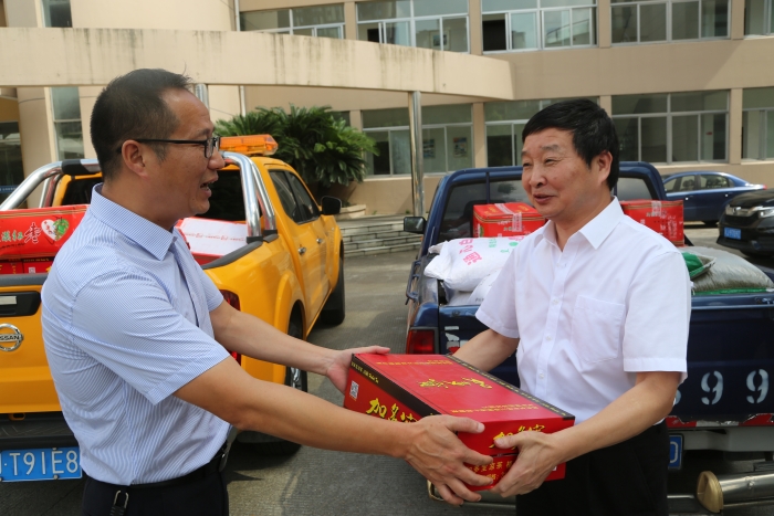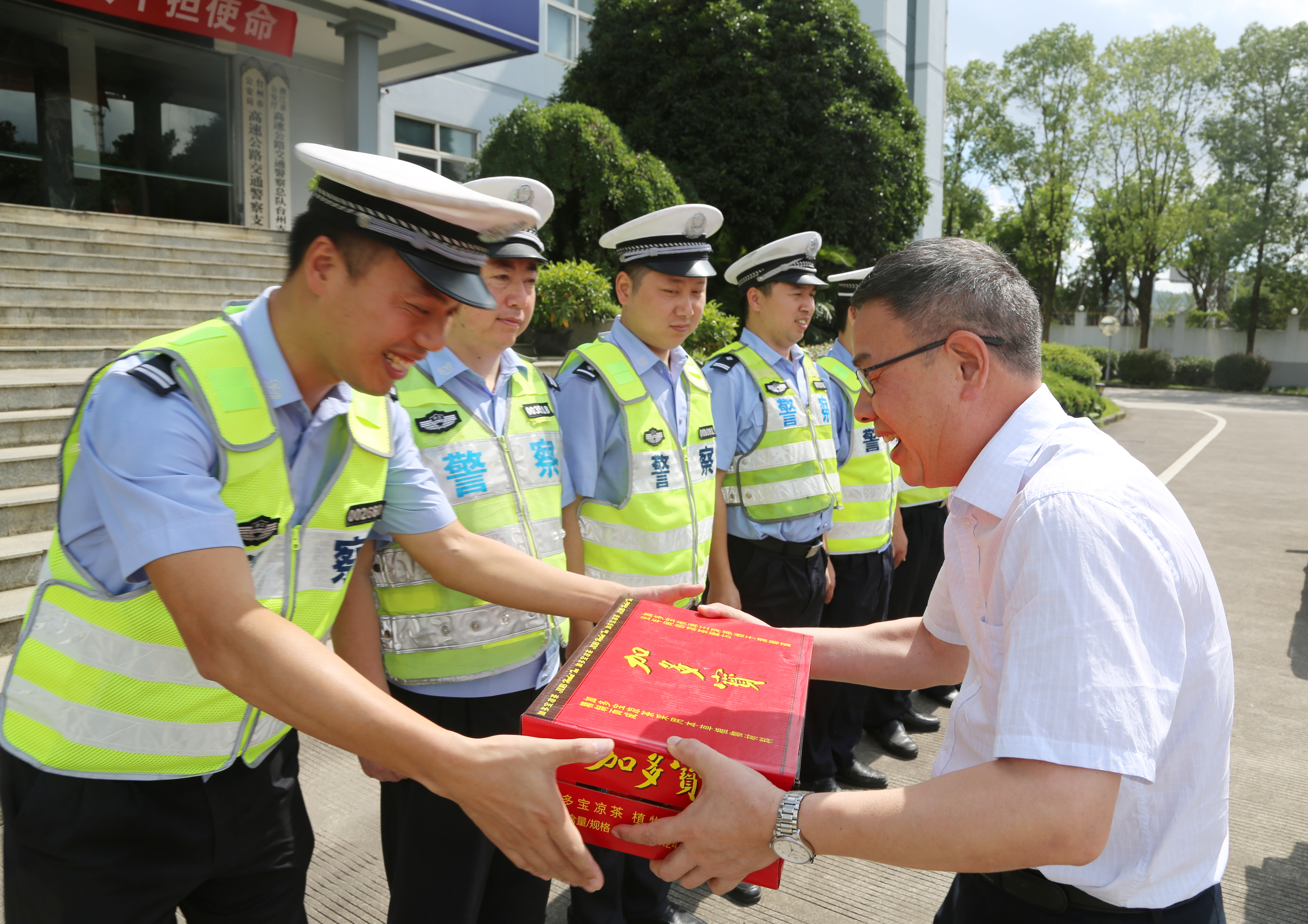 陳文波一行首先來到臺州高速公路交警總隊臺州支隊和高速路政的駐地,向他們送上了消暑物資,對他們一直以來有力維護高速公路秩序,保障本路段有序運營及高溫下堅守一線工作表示慰問和感謝,也請他們繼續(xù)支持公司工作,確保高速公路安全暢通。