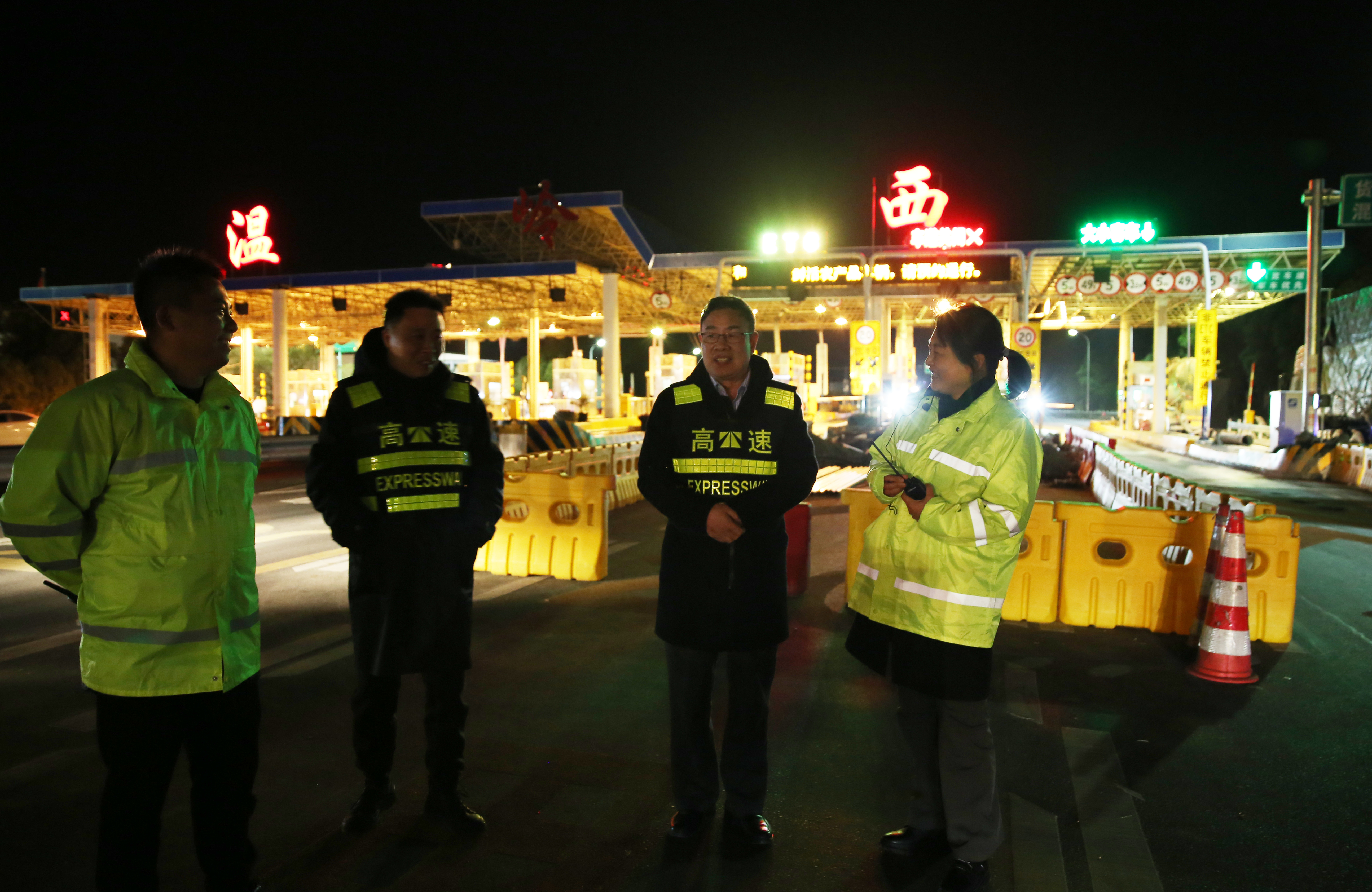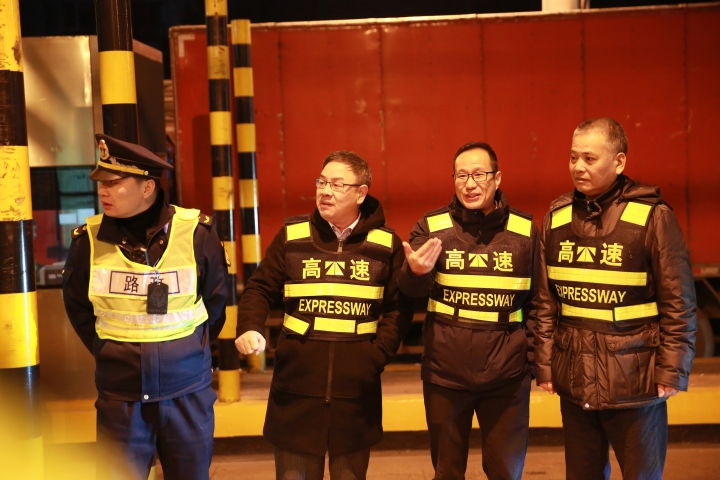 為確保取消省界收費(fèi)站工作平穩(wěn)過渡,12月31日,臺(tái)州市副市長林先華、市交通局局長陸善福、市公路局局長馬德勝,以及當(dāng)?shù)卣块T領(lǐng)導(dǎo)紛紛來到集團(tuán)一線收費(fèi)站,協(xié)力助推取消高速公路省界收費(fèi)站工作順利開展。