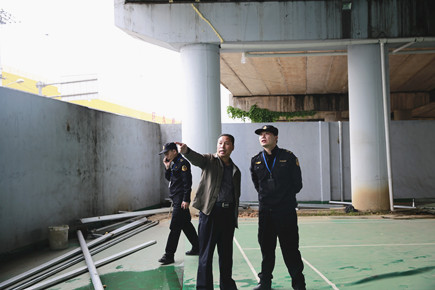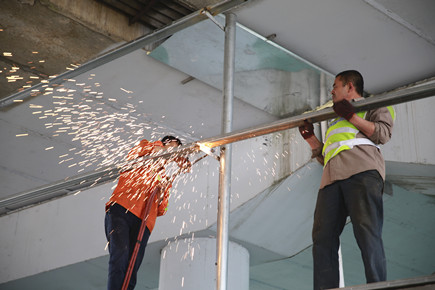 圖為公司安保部負責(zé)人與高速路政人員在現(xiàn)場指導(dǎo)拆除作業(yè)
