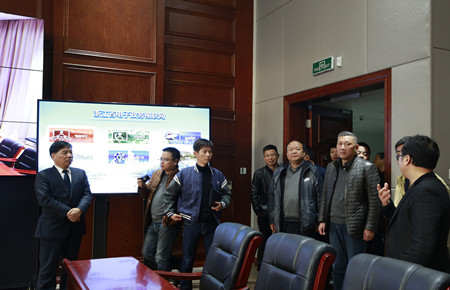 圖為考察組在市應(yīng)急指揮中心會商室觀摩 當(dāng)天下午,考察組一行先行來到臺州市應(yīng)急指揮中心參觀。在觀看了臺州城市宣傳短片和應(yīng)急管理介紹視頻后,市辦預(yù)案管理處處長柯岳兵帶領(lǐng)大家實地察看了中心機(jī)房、會商室、應(yīng)急廣播室、新聞發(fā)布廳等地??疾烊藛T認(rèn)真聽取講解的同時,還不時拿起手機(jī)拍攝記錄,觀摩途中不斷交流著經(jīng)驗與心得。