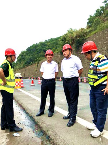 炎炎烈日,熱浪襲人。為深入了解大溪嶺機電改造施工的進展情況,8月3日下午,臺州市公路局局長馬德勝在集團總經(jīng)理張建平的陪同下實地踏看了施工現(xiàn)場。