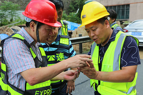 8月20日,已經(jīng)是三伏天的尾聲了,雖然經(jīng)過(guò)連續(xù)多個(gè)臺(tái)風(fēng)的洗禮,然而天氣依然炎熱。集團(tuán)總工程師江輝心系一線,在工程部負(fù)責(zé)人的陪同下,深入大溪嶺-湖霧嶺隧道機(jī)電改造項(xiàng)目工地現(xiàn)場(chǎng),慰問(wèn)正在高溫中奮戰(zhàn)的一線施工人員。