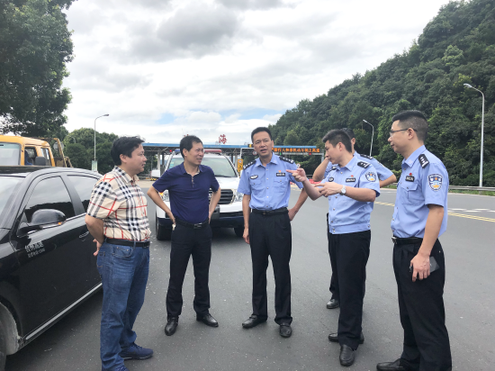 集團(tuán)總工程師江輝與高速交警踏勘臨海南互通外廣場(chǎng) 7月19日上午,集團(tuán)總工程師江輝帶領(lǐng)工程部、臨海南收費(fèi)所相關(guān)人員與臺(tái)州高速交警支隊(duì)支隊(duì)長(zhǎng)王辛微,副支隊(duì)長(zhǎng)沈汝寬一行踏勘臨海南互通外廣場(chǎng),對(duì)外廣場(chǎng)道路交通現(xiàn)狀開展實(shí)地調(diào)研。