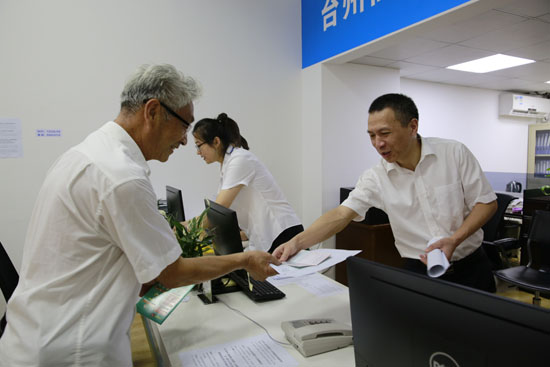 據(jù)椒江收購點(diǎn)工作人員朱海燕介紹,集團(tuán)高齡股東較多,如果他們前來辦理,工作人員會及時(shí)上前攙扶股東到審核區(qū)坐下,核對股東是否確權(quán),審核身份證、銀行卡等資料,如果一切無誤便直接帶領(lǐng)股東到辦理區(qū)。