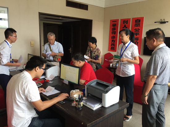 “大爺!你好!您請坐!”收購點(diǎn)的工作人員忙著接待各位股東,集團(tuán)總經(jīng)理張建平來到股權(quán)椒江收購點(diǎn)親自為股東服務(wù),為股東遞上各種股權(quán)轉(zhuǎn)讓資料。集團(tuán)其他領(lǐng)導(dǎo)班子分別赴各個(gè)收購點(diǎn)檢查指導(dǎo),確保啟動(dòng)日順利開展收購工作。