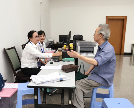 圖為70多歲的股東辦理股權轉讓現(xiàn)場
