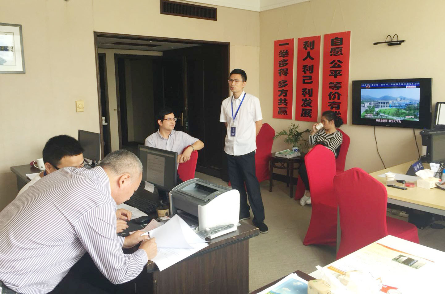 圖為臺州市政府副秘書長蘇元蓬走訪三門股權(quán)收購點 蘇元蓬一邊喝著茶水,一邊和大家拉起了家常。他是三門人,趁著國慶中秋假期回家探望親人,就來三門收購點走走,看望一下大家。 蘇元蓬回顧了市政府與集團公司此次股權(quán)收購的前期準備與工作動員,并詳細詢問了公司目前的收購情況和三門點的收購進度。工作人員介紹由于前期三門縣政府高度重視此次收購工作,特別是三門縣委常委、常務(wù)副縣長葉邦漢牽頭,召集全縣各機關(guān)單位、鄉(xiāng)鎮(zhèn)街道召開高速股權(quán)收購動員會。在收購過程中,三門電視臺、三門報等媒體宣傳到位,各相關(guān)單位全力配合,縣里老領(lǐng)導帶頭轉(zhuǎn)讓,三門股權(quán)收購工作進展順利。 “三門縣城里,你們有沒有做廣告宣傳?股東們是不是都知道了?”蘇元蓬問道?!坝械?,有的,這是我們公司準備的公告海報?!惫ぷ魅藛T林玲遞過一份海報?!拔覀兇蛩愎?jié)后張貼?!碑?shù)弥T收購點在對前來辦理轉(zhuǎn)讓的股東隨訪和電話問詢中,已確認大多數(shù)股東都已知曉股權(quán)收購這個消息后,蘇元蓬大加贊賞。 蘇元蓬強調(diào),要強調(diào)此次股權(quán)收購對于企業(yè)轉(zhuǎn)型升級的重要意義,現(xiàn)場工作人員要耐心解釋,深入宣傳,特別是那些已經(jīng)辦理轉(zhuǎn)讓的股東,由他們口口相傳會更有說服力。對于國企法人股東,一定要借助政府的力量,由臺州市國資委與當?shù)貒Y局共同推動,促成國企法人盡快轉(zhuǎn)讓,早日完成股權(quán)收購任務(wù)。 邵全森