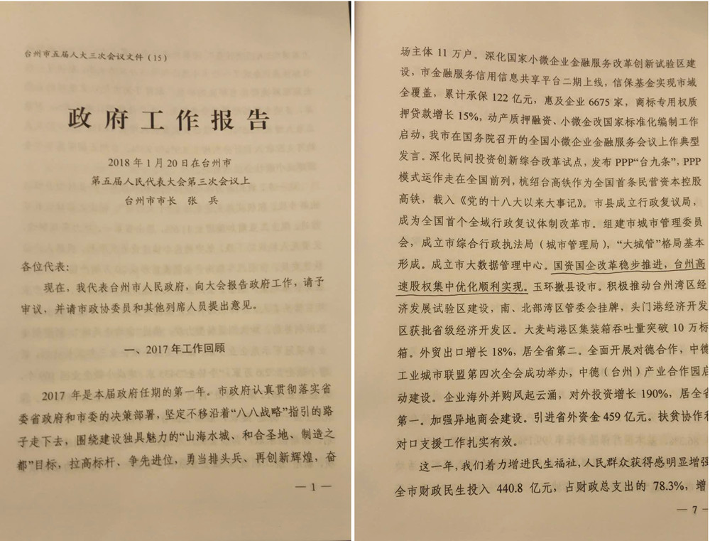 臺(tái)州高速股權(quán)集中優(yōu)化寫進(jìn)《政府工作報(bào)告》 臺(tái)州市五屆人大三次會(huì)議于1月20日上午如期召開,“國資國企改革穩(wěn)步推進(jìn),臺(tái)州高速股權(quán)集中優(yōu)化順利實(shí)現(xiàn)”,寫進(jìn)了《政府工作報(bào)告》。