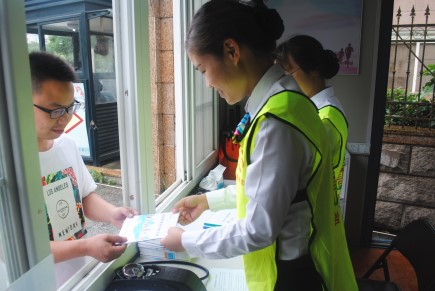 圖為志愿者正在提供服務