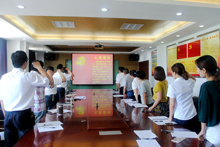 圖為全體黨員重溫入黨誓詞 會議第一項內(nèi)容由該所黨支部書記王小勇帶領(lǐng)全體黨員重溫入黨誓詞,王小勇要求各位黨員牢記宗旨,做一名合格黨員。接下來全體黨員觀看《廖俊波:永遠的“樵夫”——一名共產(chǎn)黨員的樂與愛》視頻,學(xué)習(xí)市委書記王昌榮在全市領(lǐng)導(dǎo)干部會議上的講話精神等。大家結(jié)合高速精神大討論,對照先進典型和“四講四有”合格黨員標(biāo)準(zhǔn),聯(lián)系個人思想和工作實際,認真開展批評與自我批評,查找不足,剖析原因,明確方向,并提出改進措施。 會后,王小勇強調(diào),各位黨員要做到對黨忠誠,個人服從組織,樹立理想信念,強化黨員意識,做好本職工作。 鄭瑛芝