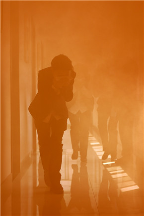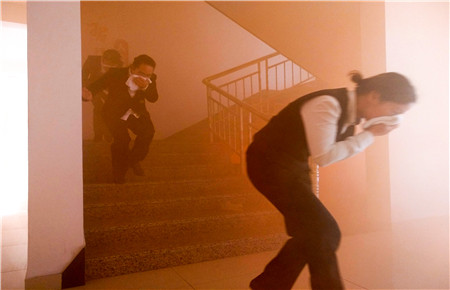 該演練模擬了生活樓發(fā)生火災,員工一發(fā)現(xiàn)火情就立即撥打了報警電話。參加演練人員聽到警報聲后,迅速拿起打濕的毛巾捂住口鼻,手扶墻體或樓梯扶手,俯身低姿從三樓或二樓,向安全通道有序撤離。全體人員不一會就疏散到了安全地帶,同時連接好消防水帶,迅速跑至火源附近,對準火源有效滅火。