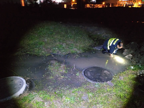 堅(jiān)持不懈找水閘 不畏困難挽損失 12月17日晚,工程養(yǎng)護(hù)部機(jī)電設(shè)備維養(yǎng)中心值班隊(duì)員頂著寒風(fēng),通過細(xì)致耐心摸尋,成功找到水管總閘并將其關(guān)閉,不僅為公司節(jié)約幾百噸水資源,還為后續(xù)的搶修工作創(chuàng)造了有利條件。 當(dāng)晚19點(diǎn)左右,正在參加周一學(xué)習(xí)夜的中心隊(duì)員接到臺(tái)州南收費(fèi)所電話,告知副站一根地下水管爆裂,附近積水較多。接到搶險(xiǎn)指令后,隊(duì)員們火速趕往現(xiàn)場(chǎng)查看,發(fā)現(xiàn)漏點(diǎn)位于外廣場(chǎng)綠化施工區(qū)域,周邊堆滿了泥土,底下不停地涌出白花花的水,并向草坪兩邊流淌,形成了多個(gè)水坑。 “必須先找到水管總閘將其關(guān)閉,否則后續(xù)搶修工作沒法開展?!标?duì)長(zhǎng)陳華棟一邊說一邊解衣?lián)Q鞋,借著隊(duì)友微弱的手機(jī)燈光,打開了周圍一個(gè)個(gè)標(biāo)有“水”字窨井蓋,可一連打開三個(gè)都未發(fā)現(xiàn)有水閘時(shí),有人勸他晚上光線不好先行暫停,等明天天亮后再尋找。