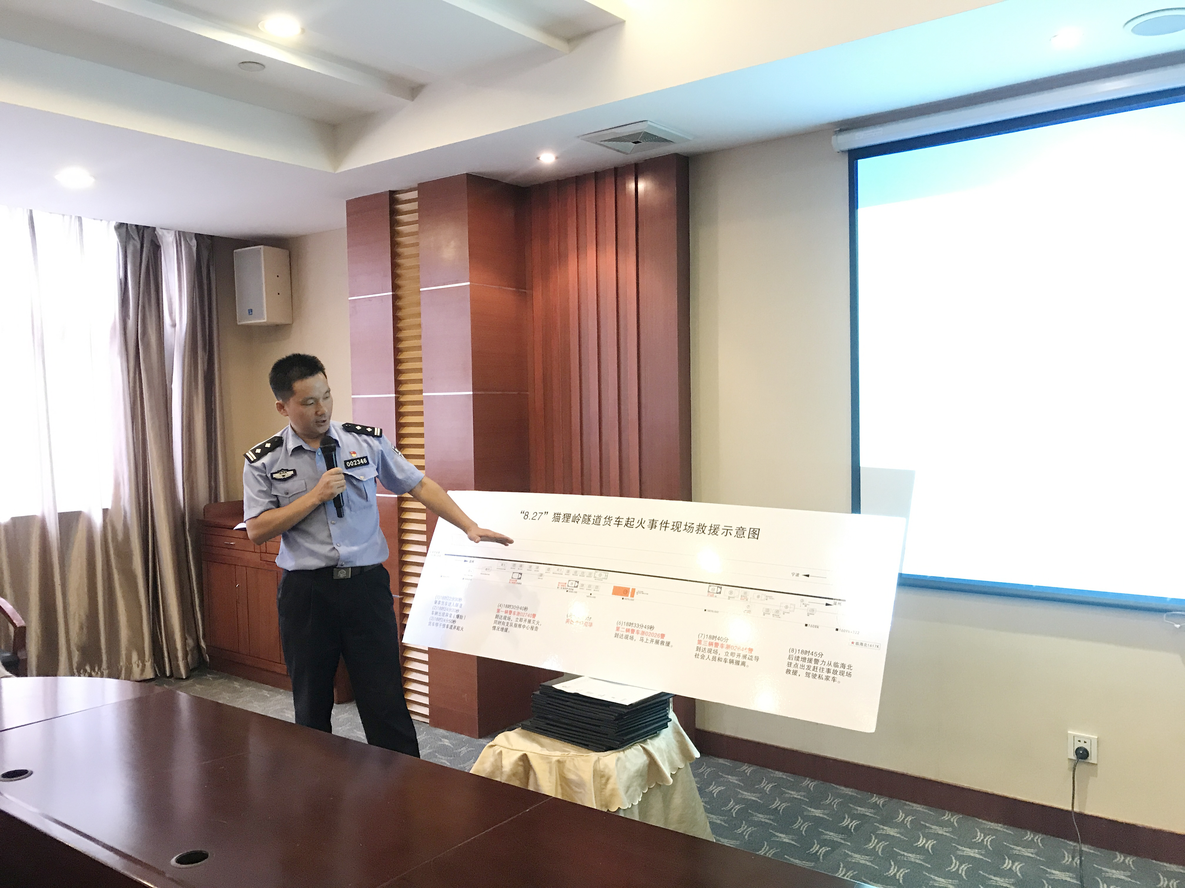 圖為培訓現(xiàn)場 徐向道從險情發(fā)生和救援兩個階段、善后處置及事件勘查四個要點出發(fā),回顧了“8.27”貓貍嶺隧道特大起火事件,并例舉2010年1月6日貨車起火,寶馬陪葬,甬臺溫高速大溪嶺隧道關閉7小時,2016年5月16日臨海南收費站出口“大貨車高速路上起火 司機駕車沖卡化險為夷”等事件,指出隧道內(nèi)起火事件時有發(fā)生,形勢比較嚴峻,大溪嶺隧道、黃土嶺隧道都曾經(jīng)歷過火災事件的考驗,隧道火災事件防范及駕駛人火災事件處置能力提升迫在眉睫,管理部門措施落實不到位要被問責、追責。