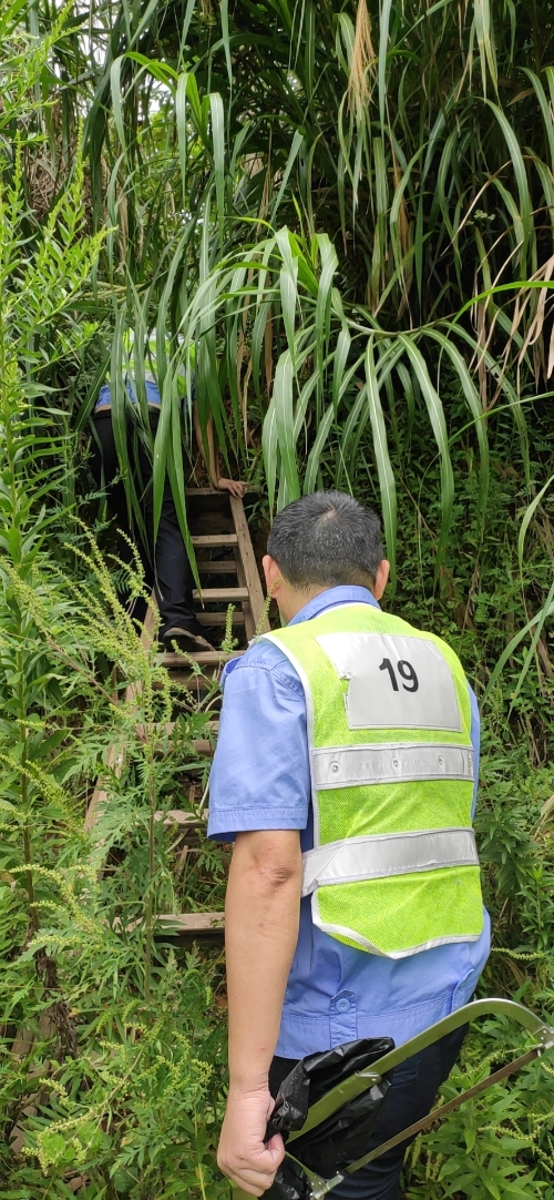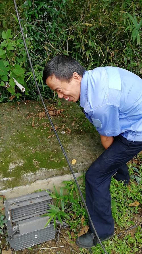 9月23日早上8點(diǎn)45分,中控員發(fā)現(xiàn)大溪嶺隧道北高位水池圖像模糊,照明燈不亮了。 為保障隧道消防安全,中控員對(duì)消防水池的水位需時(shí)時(shí)關(guān)注,萬(wàn)一水池漏水無(wú)法及時(shí)查看,如遇火災(zāi),消防水供應(yīng)不上,后果不堪設(shè)想。隊(duì)長(zhǎng)意識(shí)到事情的嚴(yán)重性,即刻安排電工湯寧光和陳幸趕往北面山上的高位水池位置。初秋的山上植物茂盛,原來(lái)通往水池的小路早已淹沒(méi)在雜草間,隊(duì)員們提著工具,憑著記憶找小路,單手撥開雜草往山上走,到達(dá)高位水池之后,他們分工協(xié)作,一邊檢查線路,一邊抬開井蓋并下到水池檢查照明燈,經(jīng)過(guò)檢查后發(fā)現(xiàn)只是線路有點(diǎn)松動(dòng),陳幸馬上對(duì)線路進(jìn)行加固。