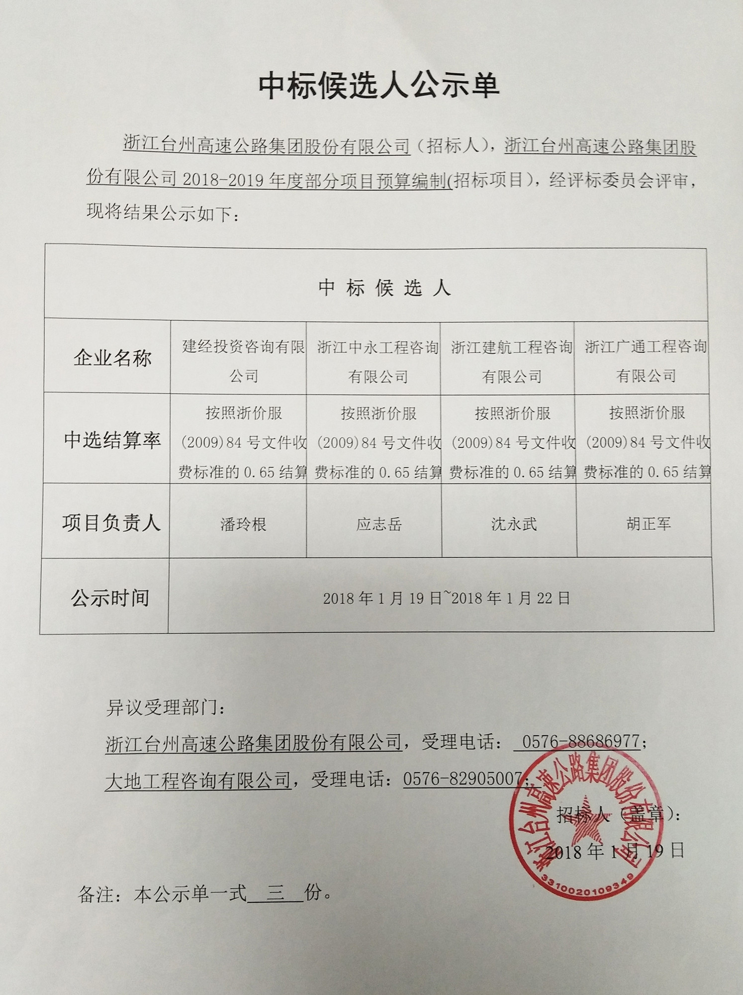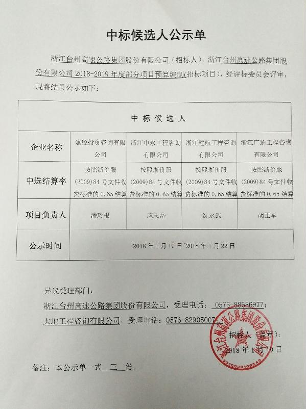 2018-2019年度部分項(xiàng)目預(yù)算編制中標(biāo)候選人公示單