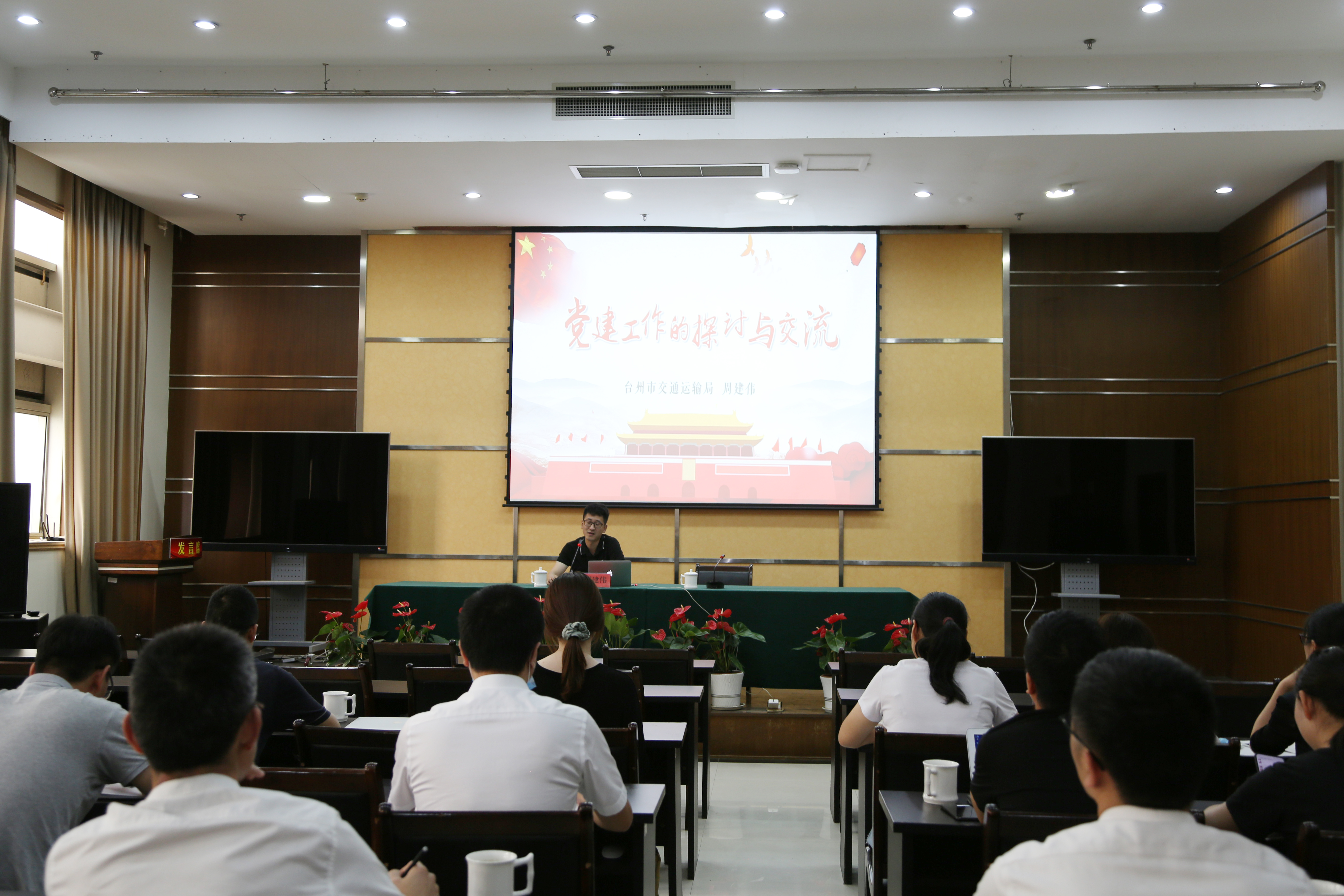 圖為周建偉授課現(xiàn)場 培訓共分兩場,第一場由臺州市交通局機關黨委紀委書記周建偉進行講課,主題是《黨建工作的探討與交流》。周建偉從自身工作實際出發(fā),由淺入深、由點到面、由表及里,層層深入,闡釋了黨建工作的重要性,同時通過詳細的案例為大家講解了黨務實操范例,這些對提高各黨支部黨務工作者的理論修養(yǎng)和工作能力起到了很大的幫助。