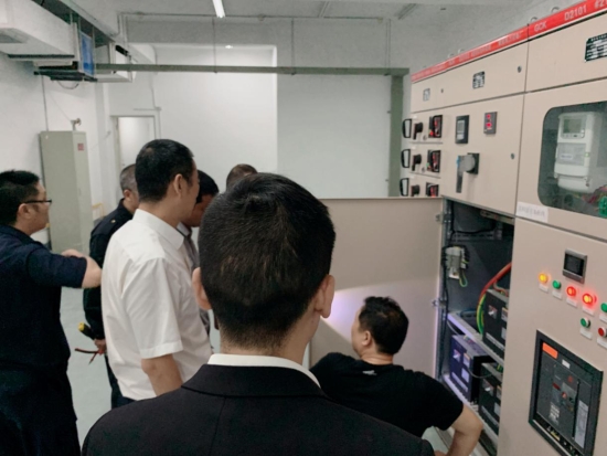 圖為多方合力查找問(wèn)題現(xiàn)場(chǎng) 5月23日,電力公司上門檢修,告知配電房及電路問(wèn)題一切正常。面對(duì)空調(diào)正常、電路正常的報(bào)告,展廳內(nèi)又嘗試開(kāi)啟空調(diào),但10分鐘左右高壓又跳閘。即將進(jìn)入炎熱的夏季,房產(chǎn)銷售展廳內(nèi)不能缺少空調(diào)。 房產(chǎn)公司求援于工程部機(jī)電設(shè)備維養(yǎng)中心,5月28日,葉俊等四名專業(yè)電力人員,以及大溪嶺隧道所金衛(wèi)軍赴銷售廳對(duì)電力問(wèn)題進(jìn)行現(xiàn)場(chǎng)勘察,經(jīng)仔細(xì)梳理、剖析,得出結(jié)論后反饋給電力部門,電力部門采納建議后第二次派人前來(lái)整改,歷史遺留電力問(wèn)題終于徹底排除。 鄭攀