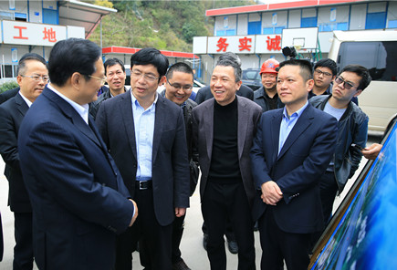 圖為市長張兵向公司總經(jīng)理張建平詢問情況