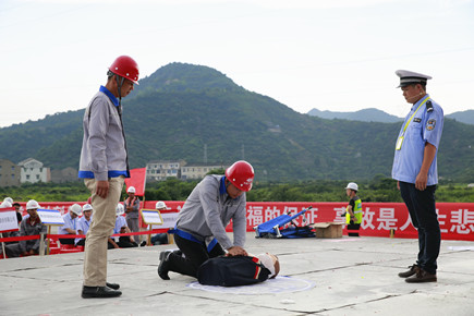 7月5日下午,根據(jù)“安全生產(chǎn)月”活動安排,內(nèi)環(huán)路(黃巖段)四個標(biāo)段的施工、監(jiān)理單位分別派出代表隊,在內(nèi)環(huán)北路(黃巖段)第四標(biāo)段施工現(xiàn)場,依次開展消防、現(xiàn)場急救和意外窒息事故的應(yīng)急救援演練。